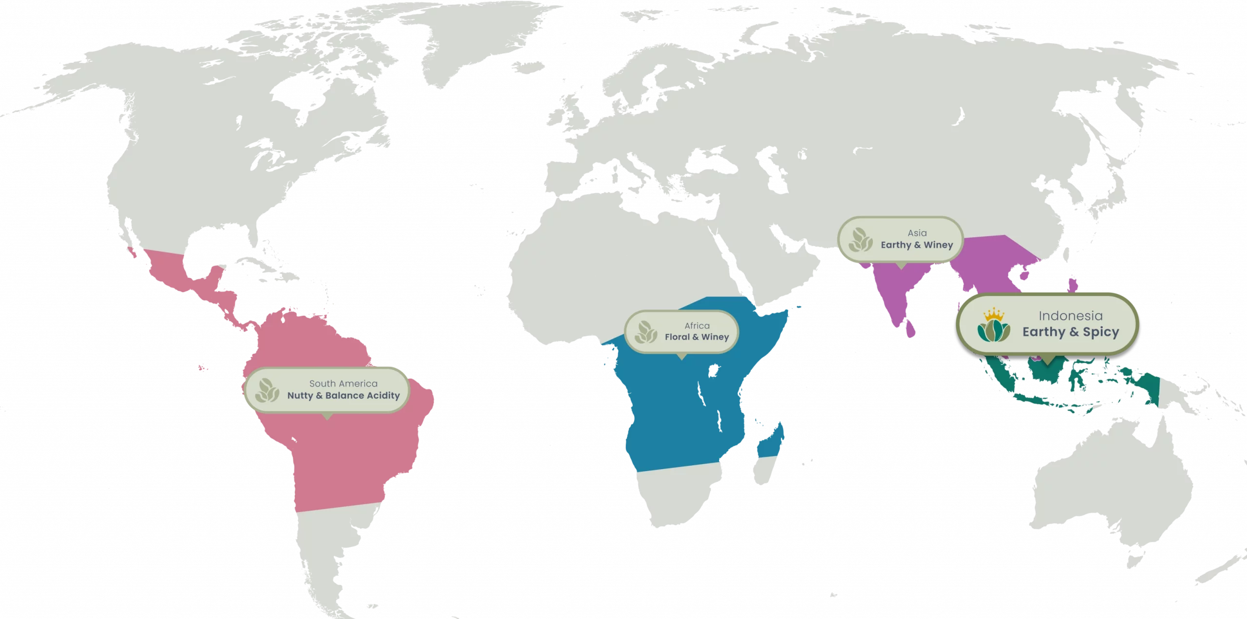 - Unique varietals only grown in Sumatra, Java, Sulawesi